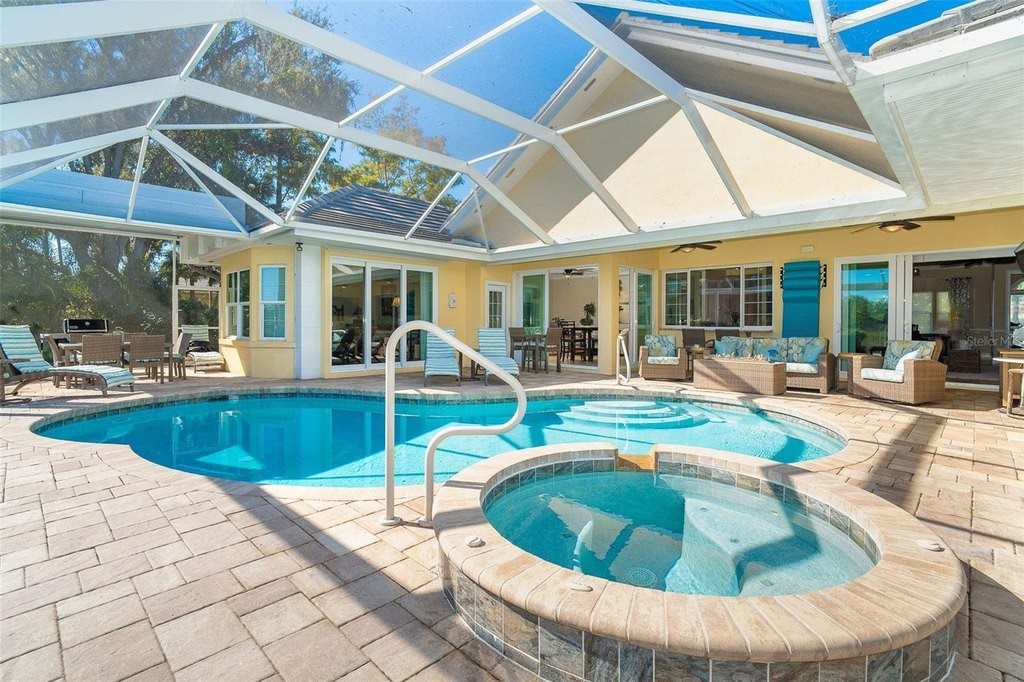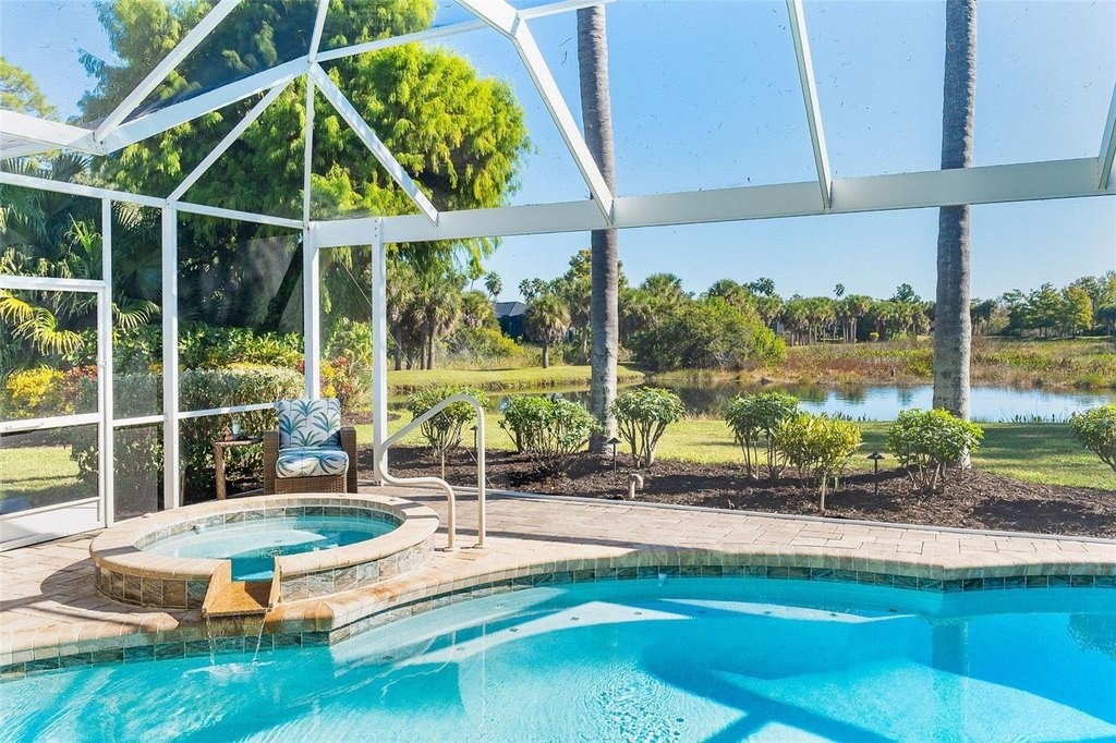 Experience refined coastal living in this exceptional 3-bedroom, 3-bath residence located in the luxury section of Boca Royale, known for its beautiful canopy tree-lined streets, tranquil setting, and oversized homesites. Designed for comfort, style, and effortless entertaining, this home offers premium finishes, thoughtful upgrades, and seamless indoor–outdoor living on an oversized lot with serene water views. Enjoy peaceful water views from the front of the home and a private, secluded water view from the lanai, creating a truly tranquil backdrop to everyday life. This property features two lanais for unmatched outdoor enjoyment. • The main lanai showcases a resort-style heated saltwater pool, heated spa, pool bath, screened grilling area, and a convenient kitchen serve-through window—ideal for gatherings of any size. • The secondary lanai offers a quiet retreat with an adjustable Aluminum roof, full screen enclosure, and paver flooring, perfect for shaded relaxation and year-round outdoor living. Inside, architectural details include tray ceilings, chair molding, transom windows, and four sets of sliding glass doors that fill the home with natural light. Peace of mind comes with hurricane impact-rated windows and shutters, Hunter Douglas window treatments, a whole-house generator, two A/C systems (including a newer 4-ton split), two hot water tanks, a water treatment system, and fully automated irrigation. The chef’s kitchen is designed for both function and style, offering granite countertops, lighted upper and under-cabinetry, and an expansive butler pantry with an icemaker, wine storage, and dedicated prep and bar areas. Premium appliances include a WOLF microwave, 5-burner cooktop, double oven, Miele dishwasher and a Sub-Zero refrigerator. The split floor plan provides exceptional flexibility. The luxury primary suite features a spa-inspired bath, while the third bedroom could also be used as an in-law suite with its own private entrance is ideal for guests or multigenerational living. An oversized 22' x 26' garage with epoxy flooring and workshop space completes the home. Set on a tranquil oversized lot with peaceful water views in both the front and back, this residence delivers an elevated lifestyle within Boca Royale Golf & Country Club. Community amenities include multiple dining venues, a heated pool, fitness center, social activities, and optional golf and racquet memberships offering tennis, pickleball, and an 18-hole championship course. Upcoming gated access to Wellen Park will provide convenient connectivity to restaurants, shopping, and the ballpark. Gulf Coast beaches are only minutes away. This home embodies luxury, serenity, and coastal living at its finest.